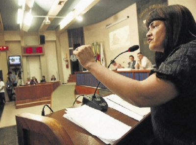 Pelo que tudo indica, a votação que definirá o número de vereadores em Santa Maria pode ficar nas mãos do PT. Até sexta-feira, quatro parlamentares – Maria de Lourdes Castro (PMDB), Marion Mortari (PP), Admar Pozzobom (PSDB) e João Carlos Maciel (PMDB) – haviam decidido que votarão contra o aumento de 14 para 21 vagas. Para aprovar os 21, são necessários 10 votos favoráveis.Dos outros 10, nove já disseram ser favoráveis e uma, a vereadora Helen Cabral (PT, na foto), estava indecisa. O que tudo indica é que Helen é contra o acréscimo de cadeiras no Legislativo, mas ela espera uma determinação da executiva municipal para bater o martelo sobre o assunto. Agora, mesmo que o PT de Santa Maria decida pelo apoio aos 21 nomes, a decisão causa estranheza e foge daquilo que a sigla sempre pregou e combateu, principalmente no Legislativo.