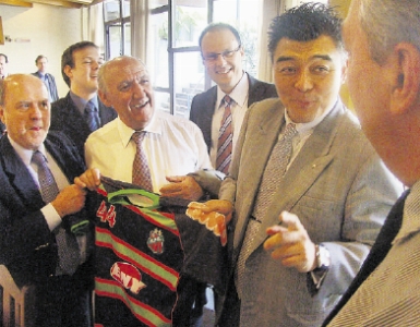 O Riograndense aproveitou a passagem por Santa Maria do representante da fábrica coreana de elevadores Hyundai no Brasil, Victor Park, e fez uma baita jogada de marketing. Durante um almoço na Bovinu’s, o presidente Julio Cesar Ausani entregou uma camisa comemorativa ao centenário do clube a Park. Ele, que torce para o Santos, disse que vestirá a camisa esmeraldina quando for à Vila Belmiro.
